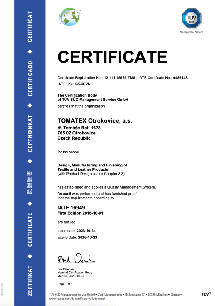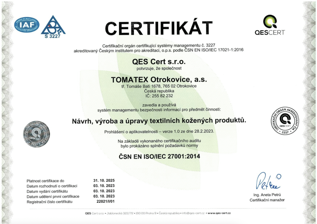 Naše procesy prochází pravidelně ISO a IATF certifikací.