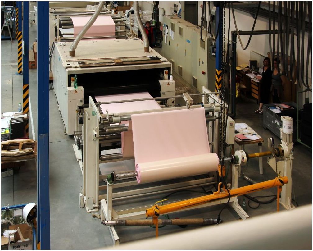 Jedné se o výrobu vrstvených materiálů, jejichž součástí není vrstva PU pěny.